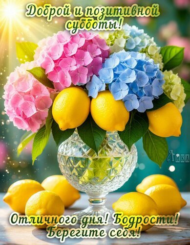 Теги:суббота, дни недели, цветы, гортензии, лимоны, фрукты, красивая картинка, добрый день, отличного дня, бодрости, берегите себя