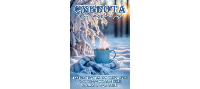 Открытка "СУББОТА! ДОБРОЕ МОРОЗНОЕ УТРО! ЗАМЕЧАТЕЛЬНЫХ ВАМ ВЫХОДНЫХ! ОТЛИЧНОГО НАСТРОЕНИЯ! КРЕПКОГО ЗДОРОВЬЯ!"