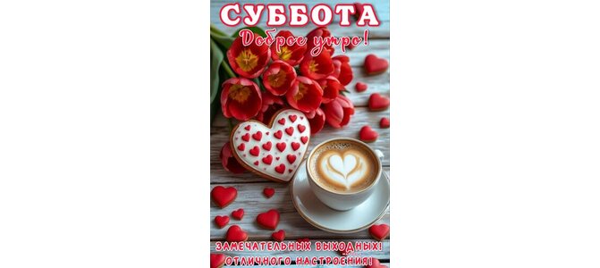 Открытка "СУББОТА. ДОБРОЕ УТРО! ЗАМЕЧАТЕЛЬНЫХ ВЫХОДНЫХ! ОТЛИЧНОГО НАСТРОЕНИЯ!"