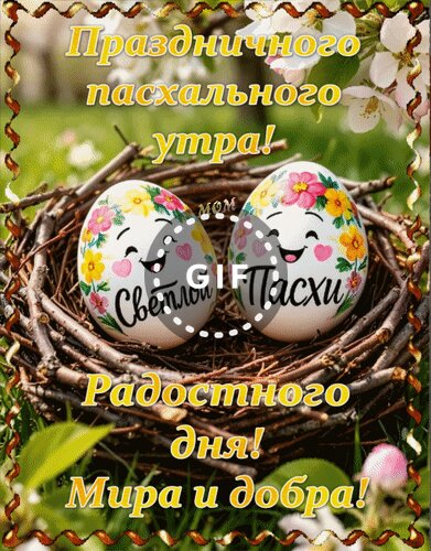 Анимированная открытка "Светлой Пасхи. Праздничного пасхального утра! Радостного дня! Мира и добра!"