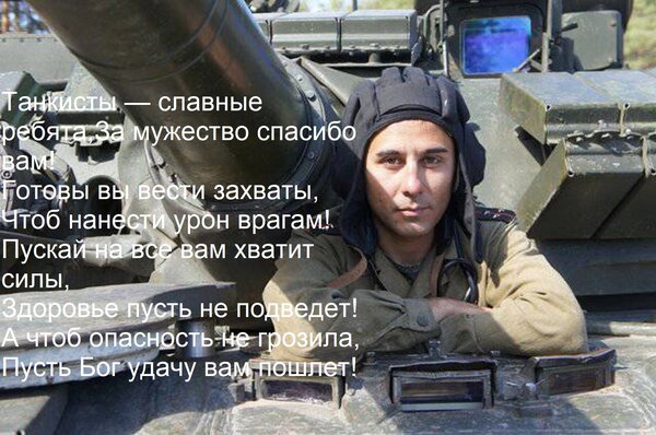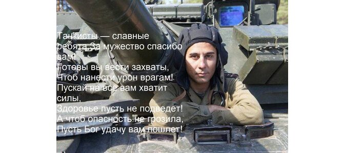 Открытка "Танкисты — славные ребята, за мужество спасибо вам! Готовы вы вести захваты, чтоб нанести урон врагам!"