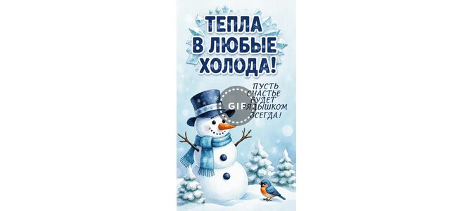 Анимированная открытка "Тепла в любые холода! Пусть счастье будет рядышком всегда!"