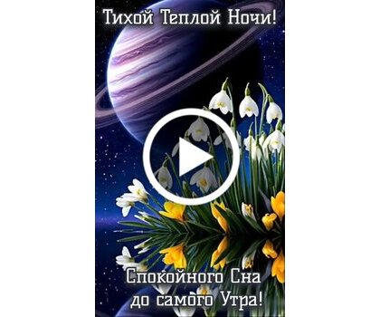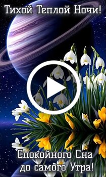 Это успокаивающее видео создано для того чтобы пожелать вам тихой и теплой ночи. На экране представлена красивая эстетичная композиция где на фоне ночного космического пространства с величественной планетой Сатурн и мерцающими звездами изображены нежные белые цветы подснежники. Текст на видео желает спокойного сна до самого утра что делает этот ролик идеальным для отправки близким или использования в качестве фона для расслабления и подготовки ко сну. Видео наполнено атмосферой умиротворения и красоты вселенной.