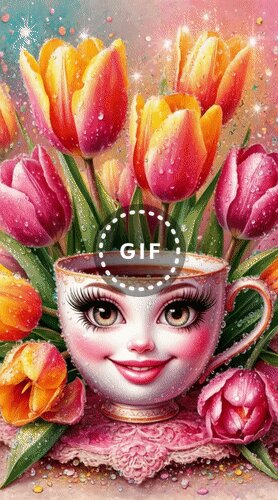 Теги:тюльпаны, цветы, чашка, бабочка, гифка, анимация, красивая анимация, пожелания на каждый день, юмор, позитив, доброе утро, добрый день