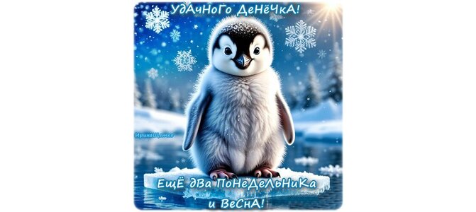Открытка "УДАЧНОГО ДЕНЕЧКА! ЕЩЕ ДВА ПОНЕДЕЛЬНИКА И ВЕСНА!"