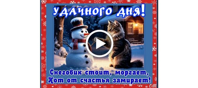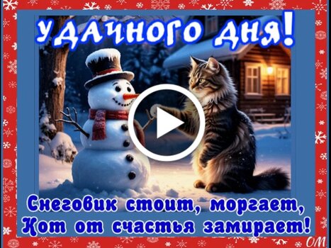 Картинка сделана в Шедеврум. Удачного дня! Снеговик стоит, моргает, кот от счастья замирает!