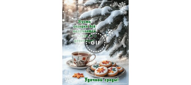 Анимированная открытка "Удачной среды! Пусть сегодня всё получается - легко и с радостью!"