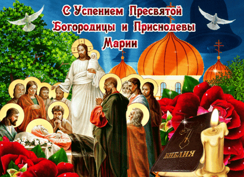 Анимированная открытка Успение Пресвятой Богородицы