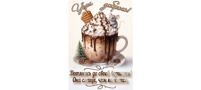 Открытка "Утра доброго. Дотянись до своей вершины. Она слаще, чем кажется."