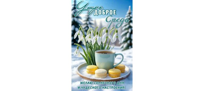 Открытка "УТРО ДОБРОЕ СРЕДА. ЖЕЛАЮ СОЛНЕЧНОГО ДНЯ И ЧУДЕСНОГО НАСТРОЕНИЯ!"