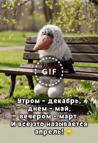 Анимированная открытка "Утром - декабрь, днём - май, вечером - март. И всё это называется апрель!"
