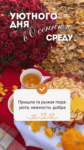 Анимированная открытка "Уютного дня в осеннюю среду. Пришла та рыжая пора: уюта, нежности, добра."