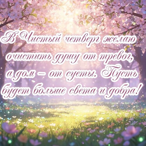В Чистый четверг желаю очистить душу от тревог, а дом — от суеты. Пусть будет больше света и добра!