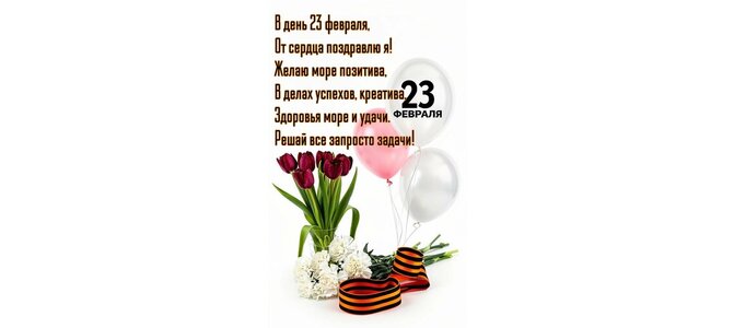 Открытка "В день 23 февраля от сердца поздравляю я. Желаю море позитива, в делах успехов, креатива"