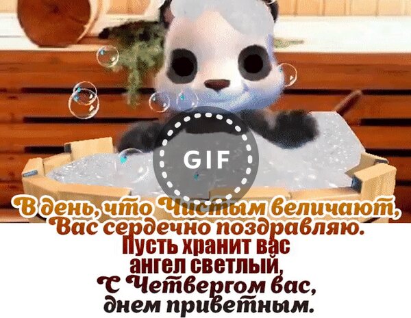 Анимированная открытка "В день, что Чистым величают, вас сердечно поздравляю. Пусть хранит вас ангел светлый, с Четвергом ва"