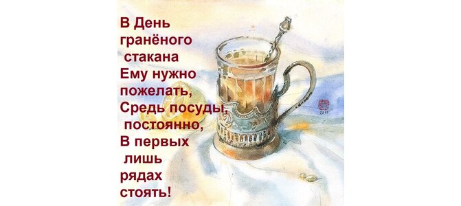 Теги:в день гранёного стакана ему нужно пожелать, средь посуды, постоянно, в первых лишь рядах стоять