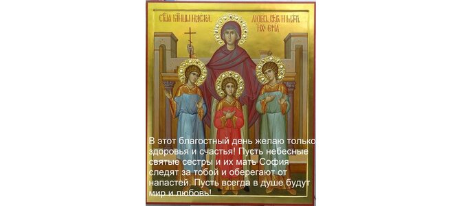 Открытка "В этот благостный день желаю только здоровья и счастья! Пусть небесные святые сестры и их мать София"