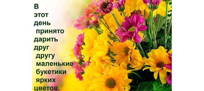Теги:этот, день, принято, дарить, друг, другу, маленькие, букетики, ярких, цветов