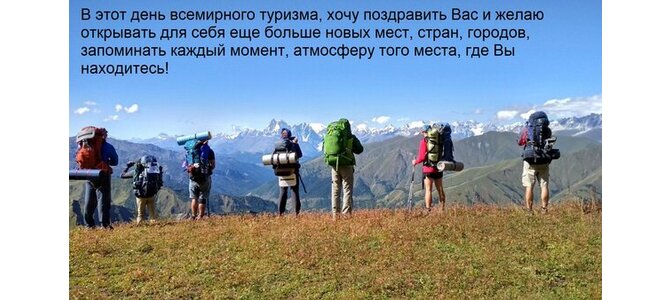 Открытка "В этот день всемирного туризма, хочу поздравить Вас и желаю открывать для себя еще больше новых мест"