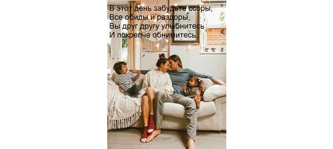 В этот день забудьте ссоры, все обиды и раздоры, вы друг другу улыбнитесь и покрепче обнимитесь.