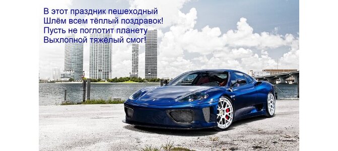 Открытка "В этот праздник пешеходный Шлём всем тёплый поздравок! Пусть не поглотит планету Выхлопной тяжёлый с"