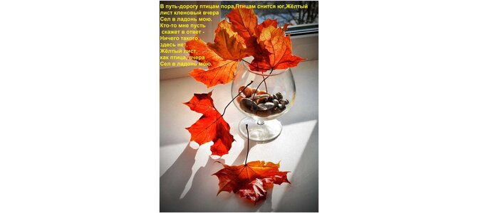 Открытка "В путь-дорогу птицам пора, Птицам снится юг, Жёлтый лист кленовый вчера Сел в ладонь мою. Кто-то мне"