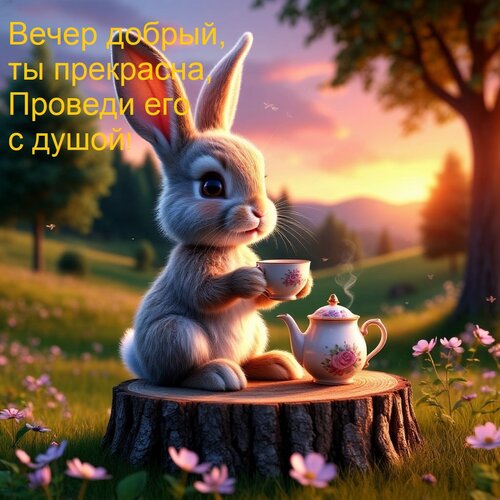 Открытка "Вечер добрый, ты прекрасна, проведи его с душой!"
