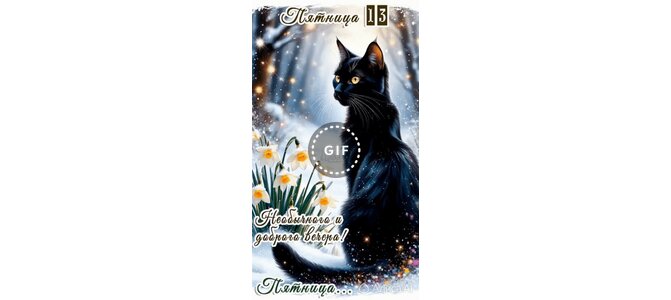 Теги:вечер пятницы 13, вечер, дни недели, черная кошка, зима, снег, позитив, доброго и необычного вечера, гифка, анимация, красивая анимация
