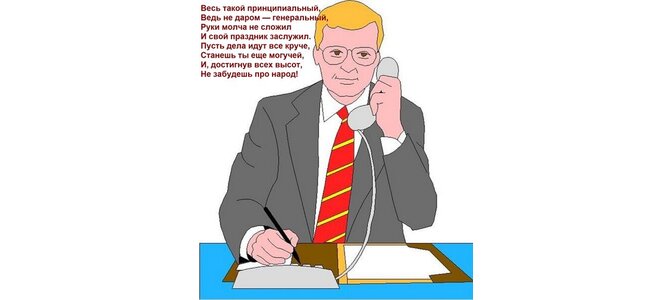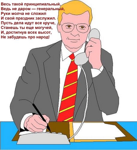 Открытка "Весь такой принципиальный, ведь не даром — генеральный, руки молча не сложил и свой праздник заслужил."