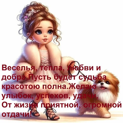 Теги:веселья, тепла, любви и добра, пусть будет судьба красотою полна желаю улыбок, успехов, удачи, от жизни приятной, огромной отдачи