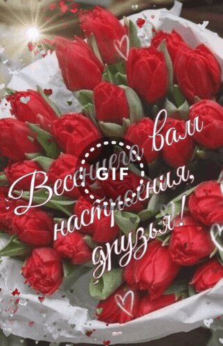 Анимированная открытка "Весеннего вам настроения, друзья!"