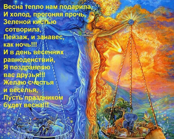 Теги:весна тепло нам подарила, и холод, прогоняя прочь, зеленой кистью сотворила, пейзаж, и занавес, как ночь и в день весенних равноденствий, я поздравляю вас друзья желаю счастья и веселья, пусть праздником будет весна