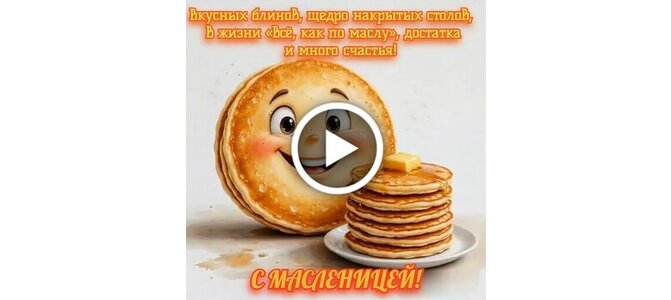 Видеооткрытка "Вкусных блинов, щедро накрытых столов, в жизни «всё, как по маслу», достатка и много счастья!"