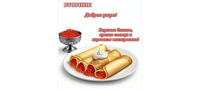 Открытка "вкусных блинов, яркого солнца и хорошего настроения."
