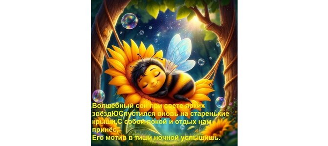 Теги:волшебный, сон, при, свете, ярких, звёзд, спустился, вновь, старенькие, крыши, с собой покой и отдых нам принёс, его мотив в тиши ночной услышишь