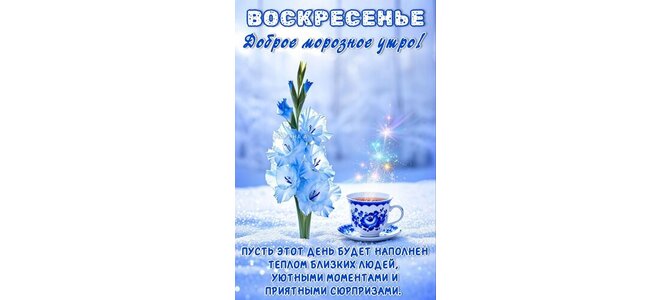 Открытка "ВОСКРЕСЕНЬ. ДОБРОЕ МОРОЗНОЕ УТРО! ПУСТЬ ЭТОТ ДЕНЬ БУДЕТ НАПОЛНЕН ТЕПЛОМ БЛИЗКИХ ЛЮДЕЙ, УЮТНЫМИ МОМЕН"