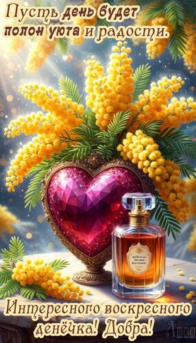 Теги:воскресенье, днинедели, выходной, цветы, мимоза, сердечко, духи, красивая картинка, интересного воскресного дня, добра, весна, уюта, радости