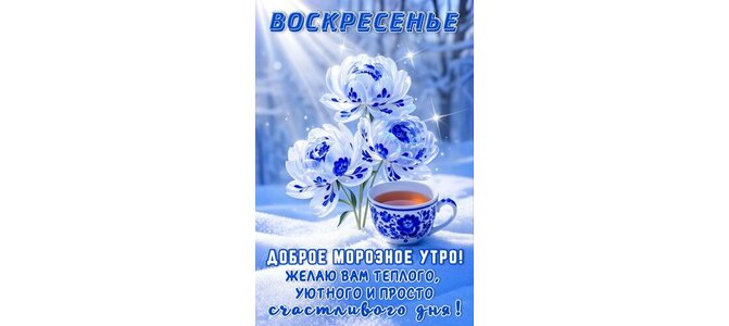Открытка "ВОСКРЕСЕНЬЕ. ДОБРОЕ МОРОЗНОЕ УТРО! ЖЕЛАЮ ВАМ ТЕПЛОГО, УЮТНОГО И ПРОСТО СЧАСТЛИВОГО ДНЯ!"