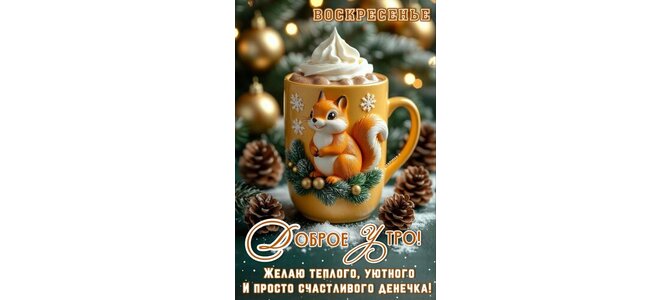 Открытка "Воскресенье. Доброе утро! Желаю теплого, уютного и просто счастливого денечка!"