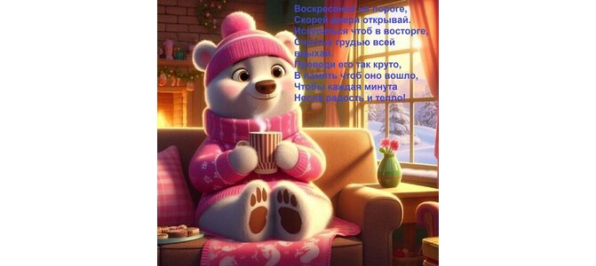 Открытка "Воскресенье на пороге, скорей двери открывай. Искупаться чтоб в восторге, счастье грудью всей вдыхай"