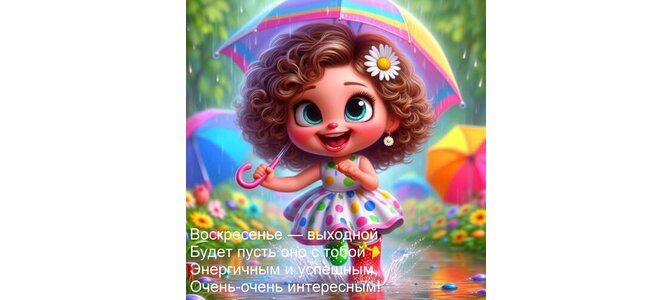 Теги:воскресенье выходной, будет, пусть, оно, тобой, энергичным, успешным, очень-очень интересным