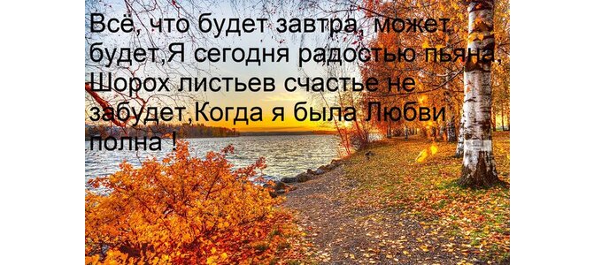 Теги:всё, что будет завтра, может будет, я сегодня радостью пьяна, шорох листьев счастье не забудет, когда я была любви полна