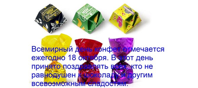 Открытка "Всемирный день конфет отмечается ежегодно 18 октября. В этот день принято поздравлять всех, кто не р"