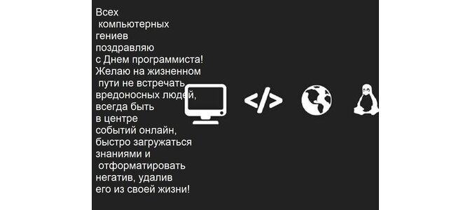 Теги:всех, компьютерных, гениев, поздравляю, днем, программиста, желаю, жизненном, пути, встречать, вредоносных, людей, всегда быть в центре событий онлайн