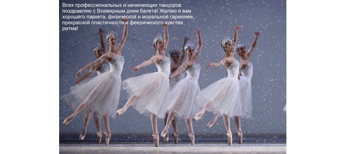 Теги:всех профессиональных и начинающих танцоров поздравляю с всемирным днем балета желаю я вам хорошего паркета, физической и моральной гармонии, прекрасной пластичности и феерического чувства ритма