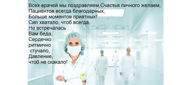 Теги:всех врачей мы поздравляем, счастья личного желаем, пациентов всегда благодарных, больше моментов приятных сил хватало, чтоб всегда, не встречалась вам беда, сердечко ритмично стучало, давление, чтоб не скакало