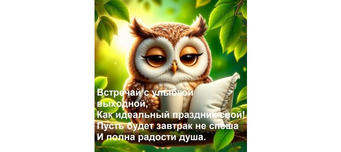 Теги:встречай с улыбкой выходной, как идеальный праздник свой пусть будет завтрак не спеша и полна радости душа