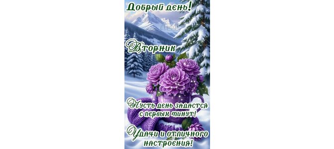 Теги:вторник, дни недели, цветы, шарф, зима, снег, красивая картинка, удачи и отличного настроения, добрый день