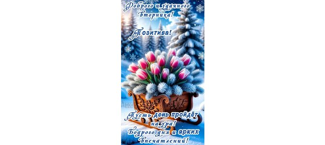 Теги:вторник, дни недели, сани, цветы, тюльпаны, снег, зима, лес, красивая картинка, позитива, бодрого дня, ярких впечателний, пусть день пройдет на ура