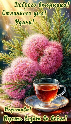 Теги:вторник, дни недели, чай, цветы, удачи, добрый день, пусть везедт во всем, отличного дня, весна, красивая картинка, кипарис